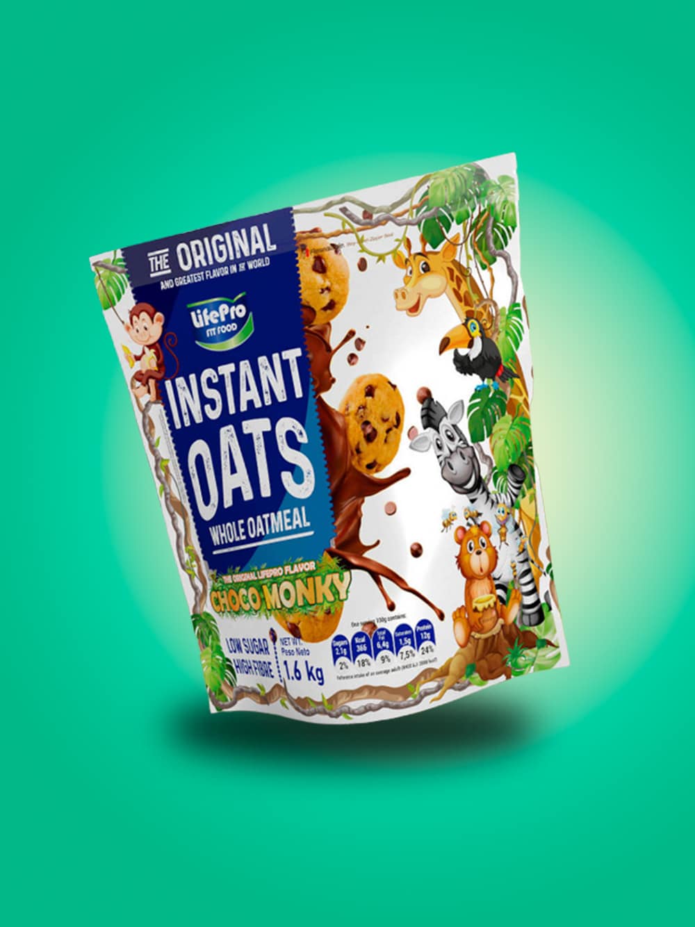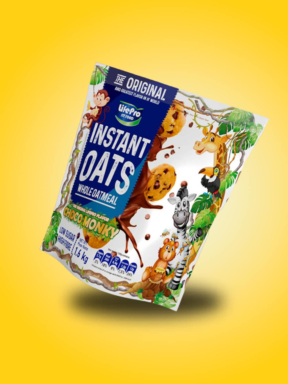 Instant Oats Choco Monky, la última joya en nuestra prestigiosa línea de harinas de avena Premium de Life Pro.